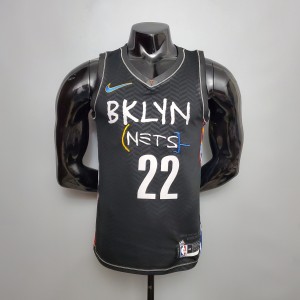 • Item NO.: L171(刺绣logo)NBA篮网黑色V领彩边22号